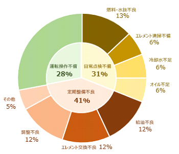 きちんと点検メンテナンスをしていたら、機械トラブルの70%は防止できたかも知れません。 取扱説明書の記載に基づき、定期的な点検・メンテナンスを実施してください。