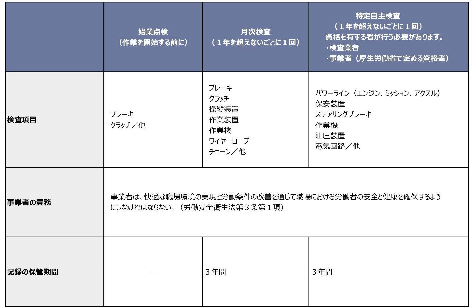特定自主検査(1年を超えない期間毎に1回、不整地運搬車は2年を超えない期間ごとに1回)