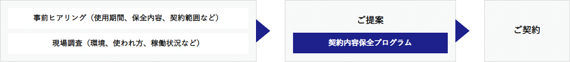 使用期間、保全内容、契約範囲などの事前ヒアリングならびに現場調査をさせていただいた上で、最適な保全プログラムを作成し、ご提案いたします。